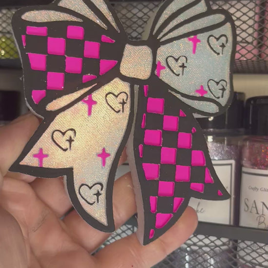 Checkered Print Bow with Heart Cross Freshie