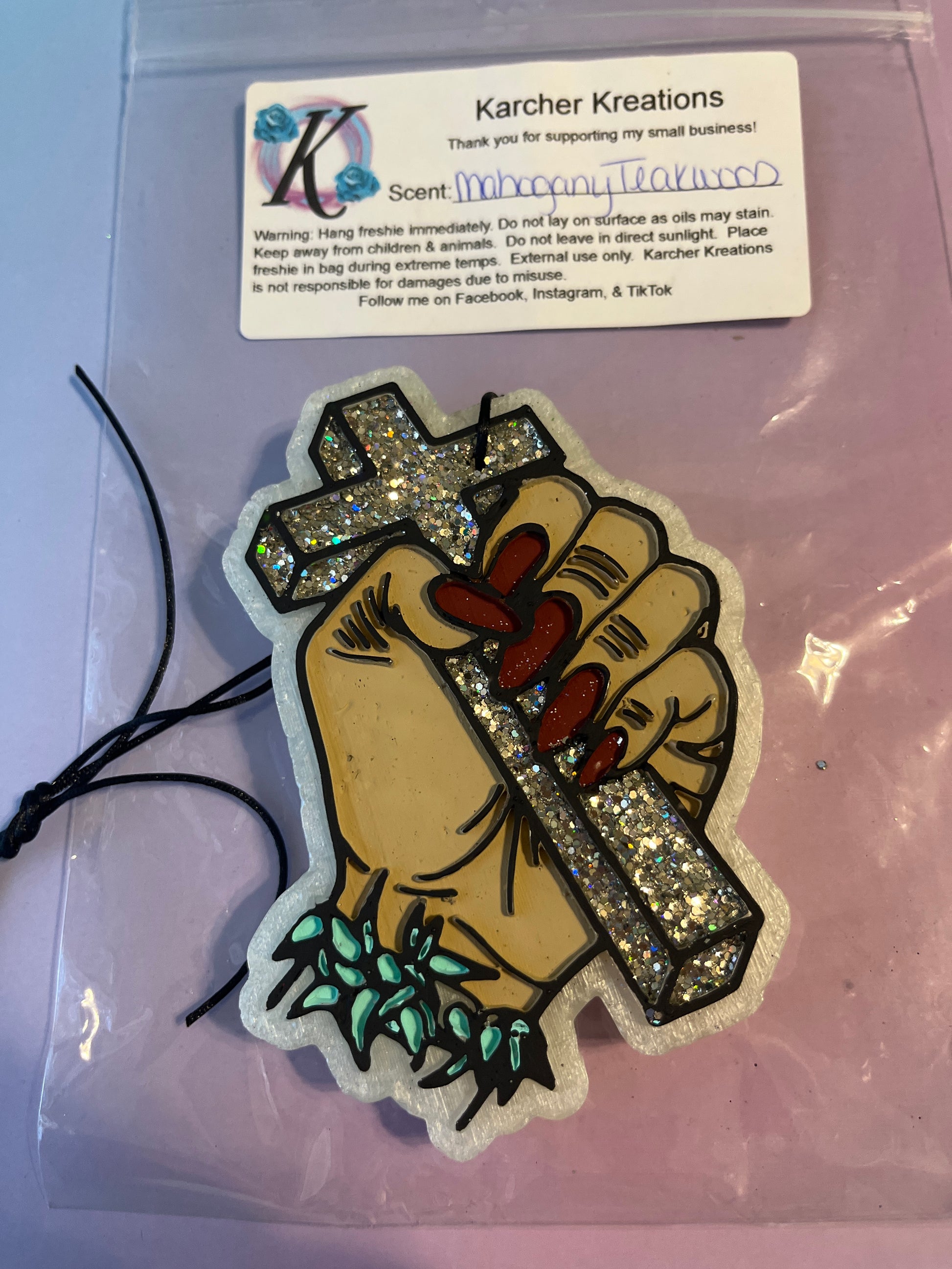 Hand with Cross- Teakwood